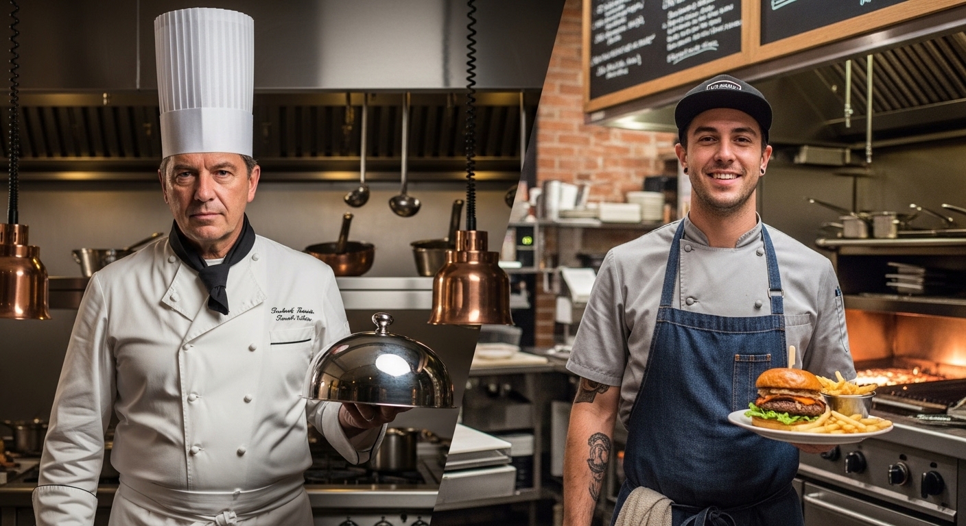 Кітель кухарський у дорогому закладі часто є частиною професійного образу і працює не лише на комфорт, а й на загальне враження про кухню. Особливо це важливо у форматах з відкритою кухнею, де гості бачать команду. У демократичному сегменті цей елемент теж має бути охайним, але там на перший план частіше виходять витривалість, простота догляду та зручність у щоденній роботі.