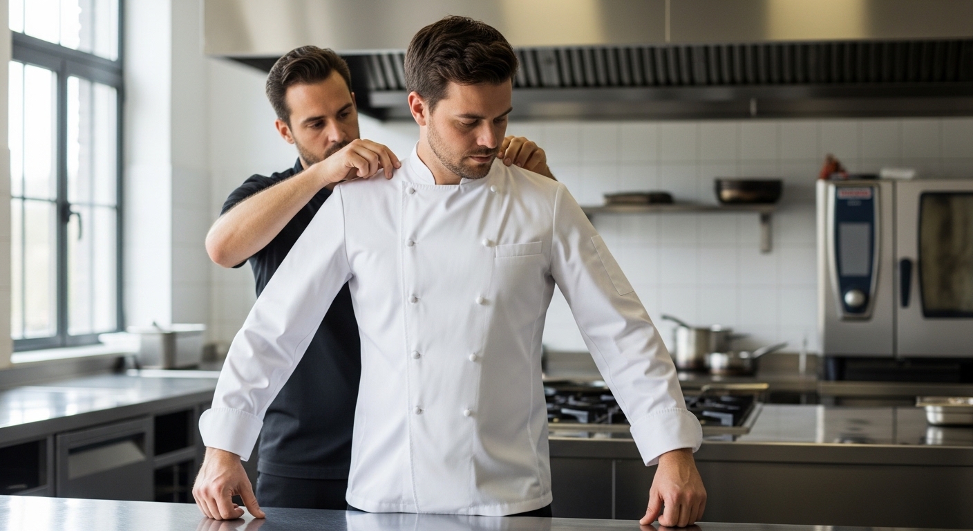 Классический китель поварской остаётся универсальным решением.